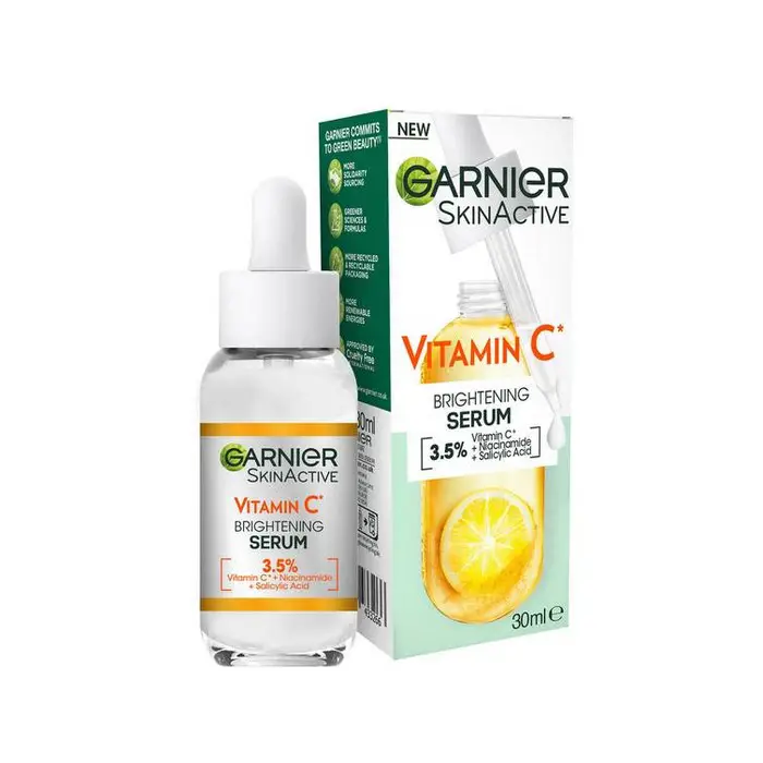 سرم ویتامین سی گارنیر یک سرم روشن کننده و ضد لک قوی است که فوراً رنگ پوست را روشن میکند و بصورت طبیعی پوست را شفاف و درخشان میکند. ویتامین سی گارنیر حاوی یک نوع ویتامین C غلیظ و تقویت شده است که تیرگیهای پوست را به وضوح روشن میکند.