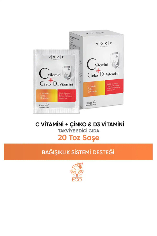 ویتامین C + روی و ویتامین D3 | مکمل ویتامین روزانه - 20 ساشه پودر برند VOOP ( VOOP )