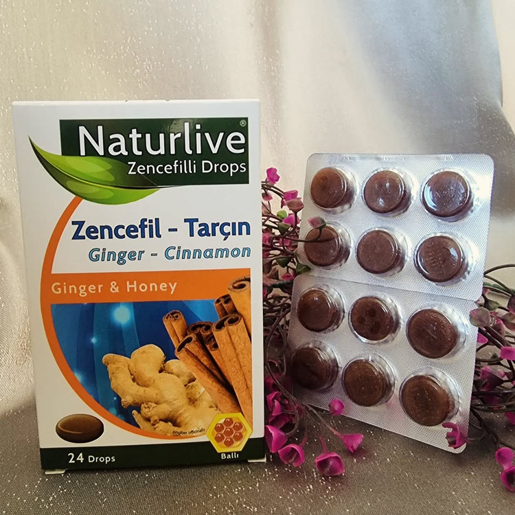 قرص آبنباتی حاوی زنجبیل و دارچین که با عسل شیرین شده است. برای پیشگیری از سرما خوردگی و گلو درد بسیار موثر است.خانم ها و آقایان میتوانند ازین آبنبات میل کنند. هر بسته 24 عددی است.