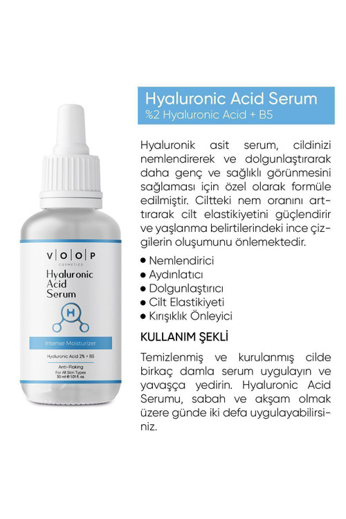اسم محصول ترکی استانبولی : Hyaluronik Asit Serum B5 30 ml | Yoğun Nemlendirici Cilt Bakım Serumu ترجمه اسم محصول به فارسی : سرم هیالورونیک اسید B5 30 میلی لیتر | سرم مراقبت از پوست مرطوب کننده شدید